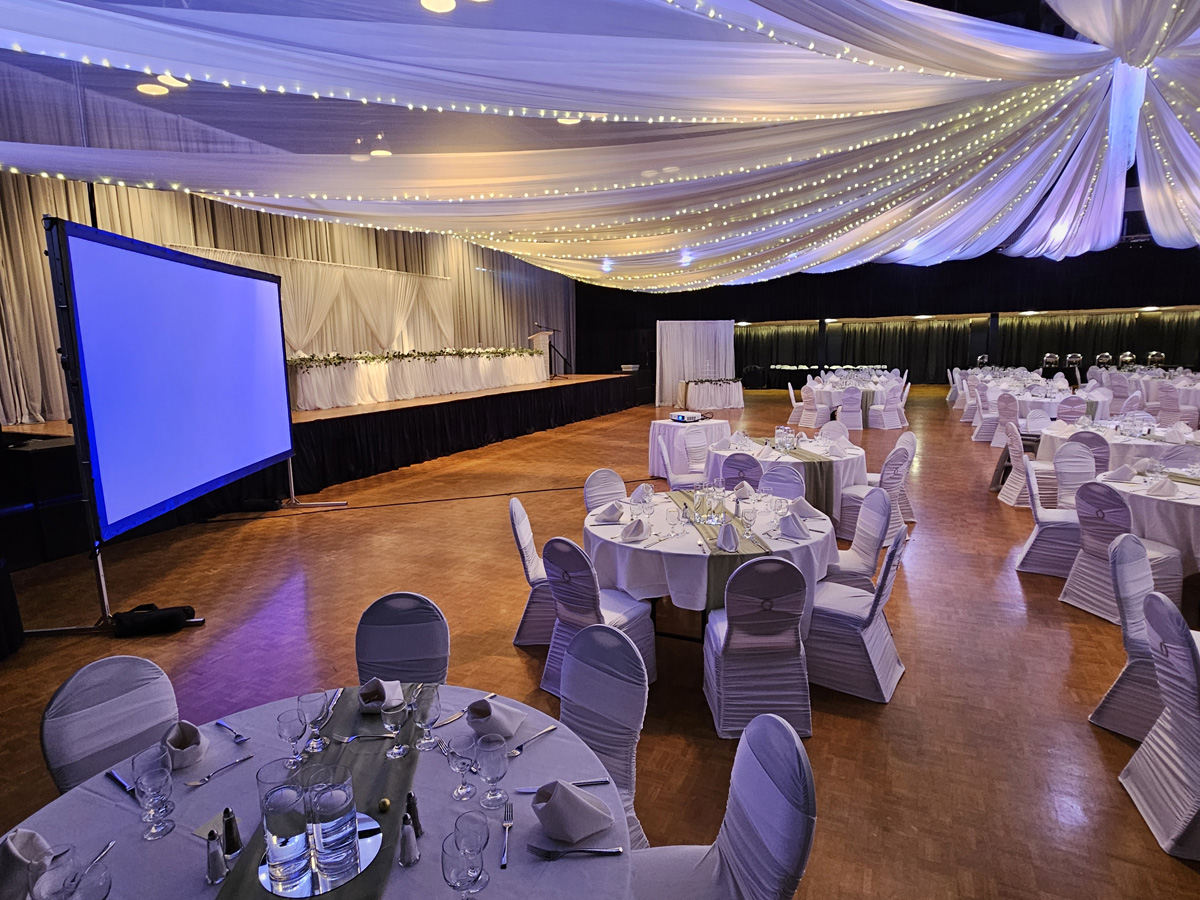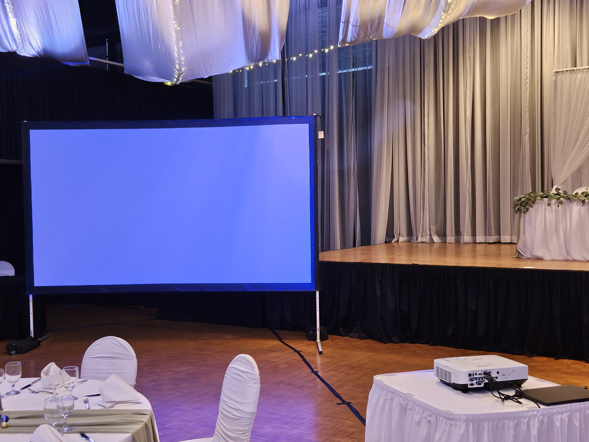 The right size projector screen can make or break your viewing experience. With so many different sizes available, it can be difficult to determine which type of screen best meets your needs. Leave it to us to bring the best equipment for your event that suits your venue and guest count.