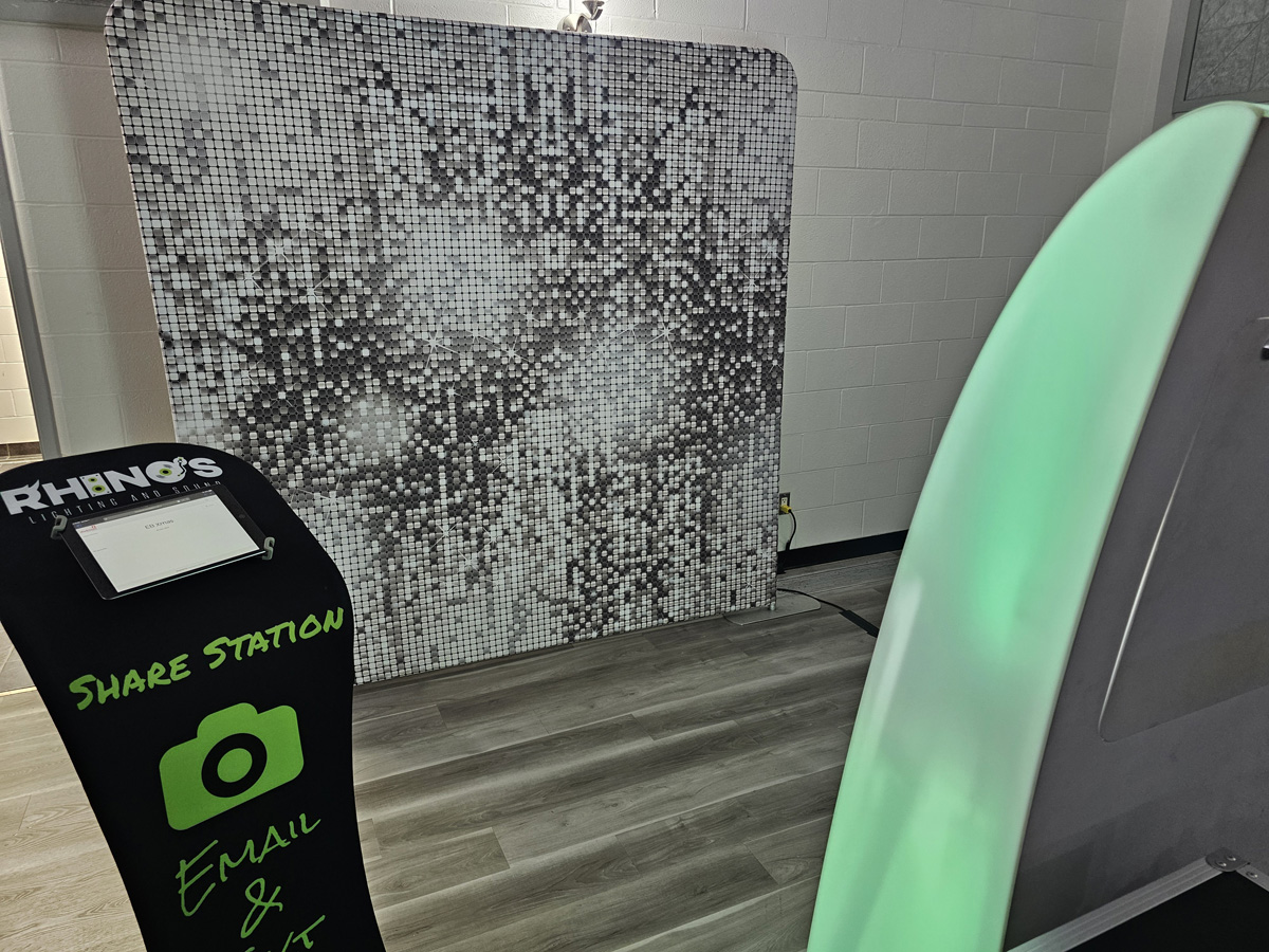 It’s all delivered with the same professionalism and attention to detail Rhino’s is known for. Our booths are open-concept, which encourages more group shots and a better overall flow of traffic at your event.